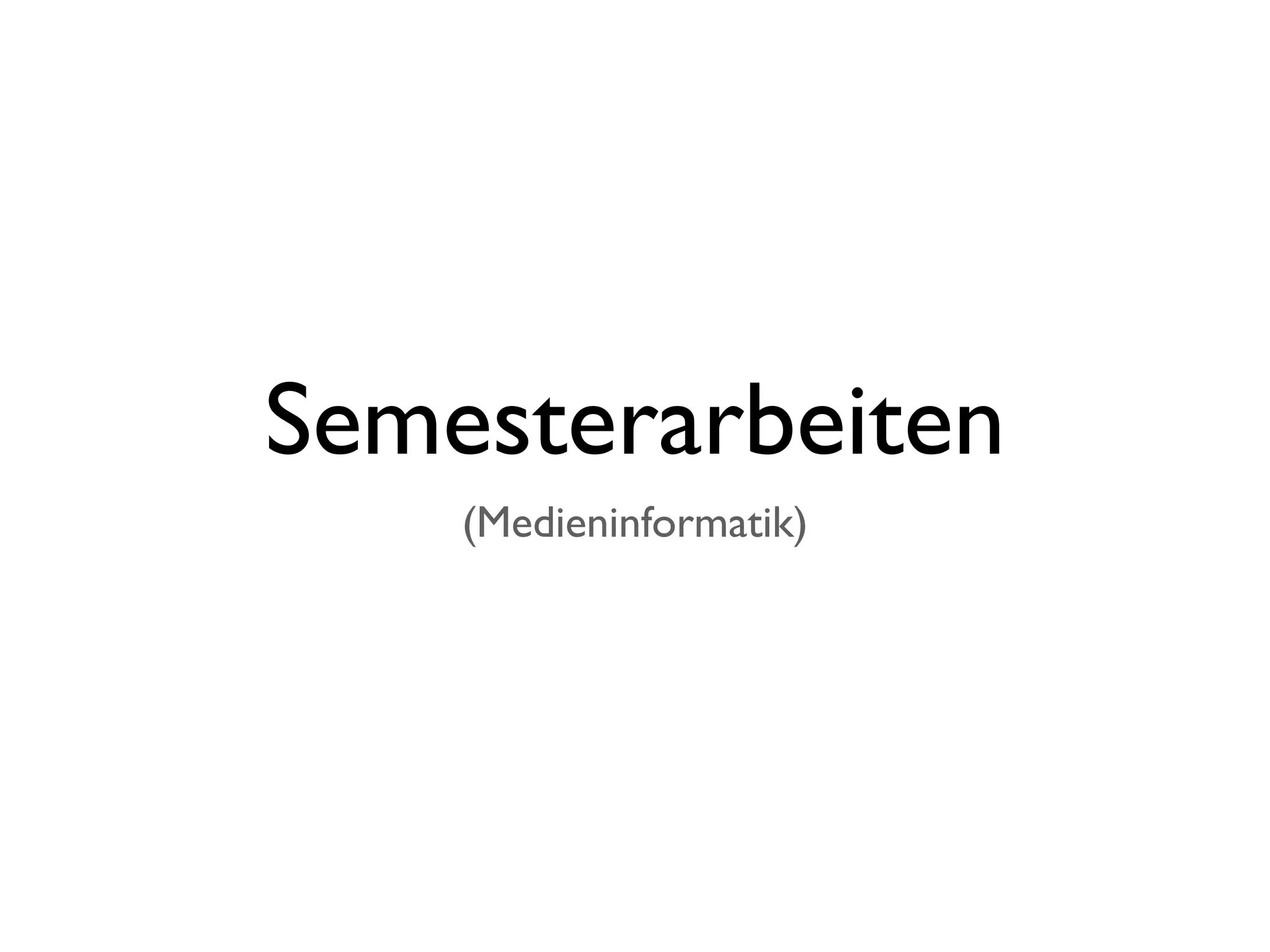 Das Dokument umfasst die Anforderungen und Vorschläge für Semesterarbeiten in Medieninformatik mit freier Themenwahl, wobei der Arbeitsaufwand bei etwa 25-30 Stunden liegt und Gruppendarbeit möglich ist. Themenvorschläge beinhalten die Entwicklung von Ontologien, Datenmapping und semantic web Applikationen, wobei spezifische Beispiele und Technologien angegeben sind. Der Abgabetermin für die Arbeiten ist der 31. März 2012.