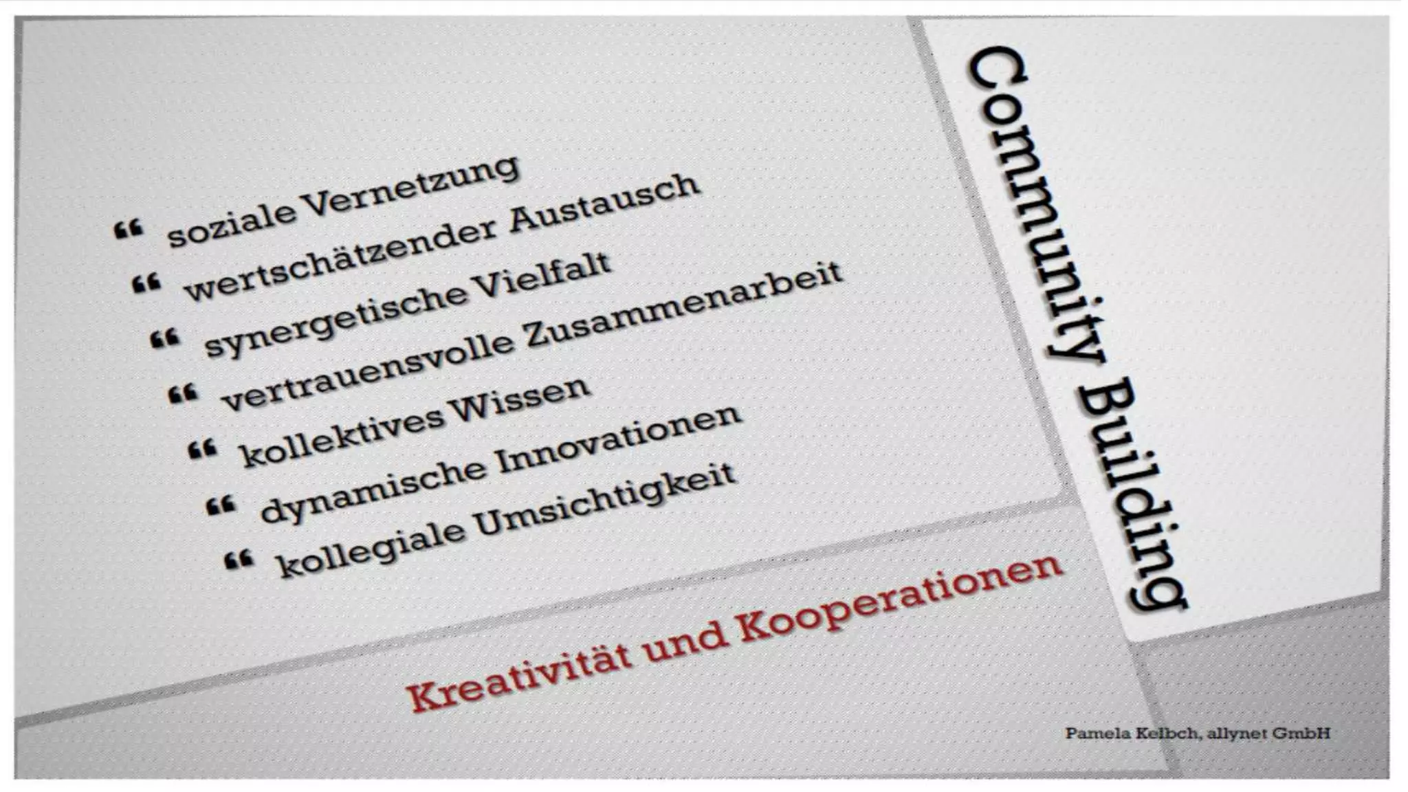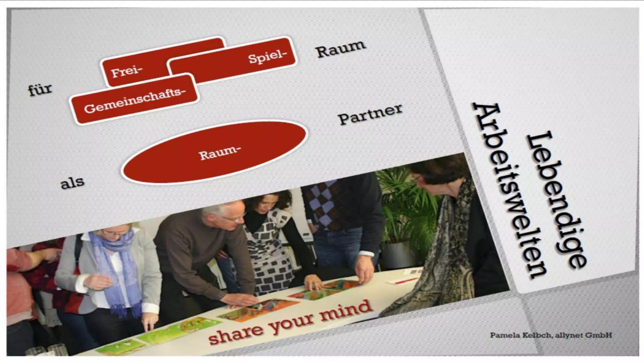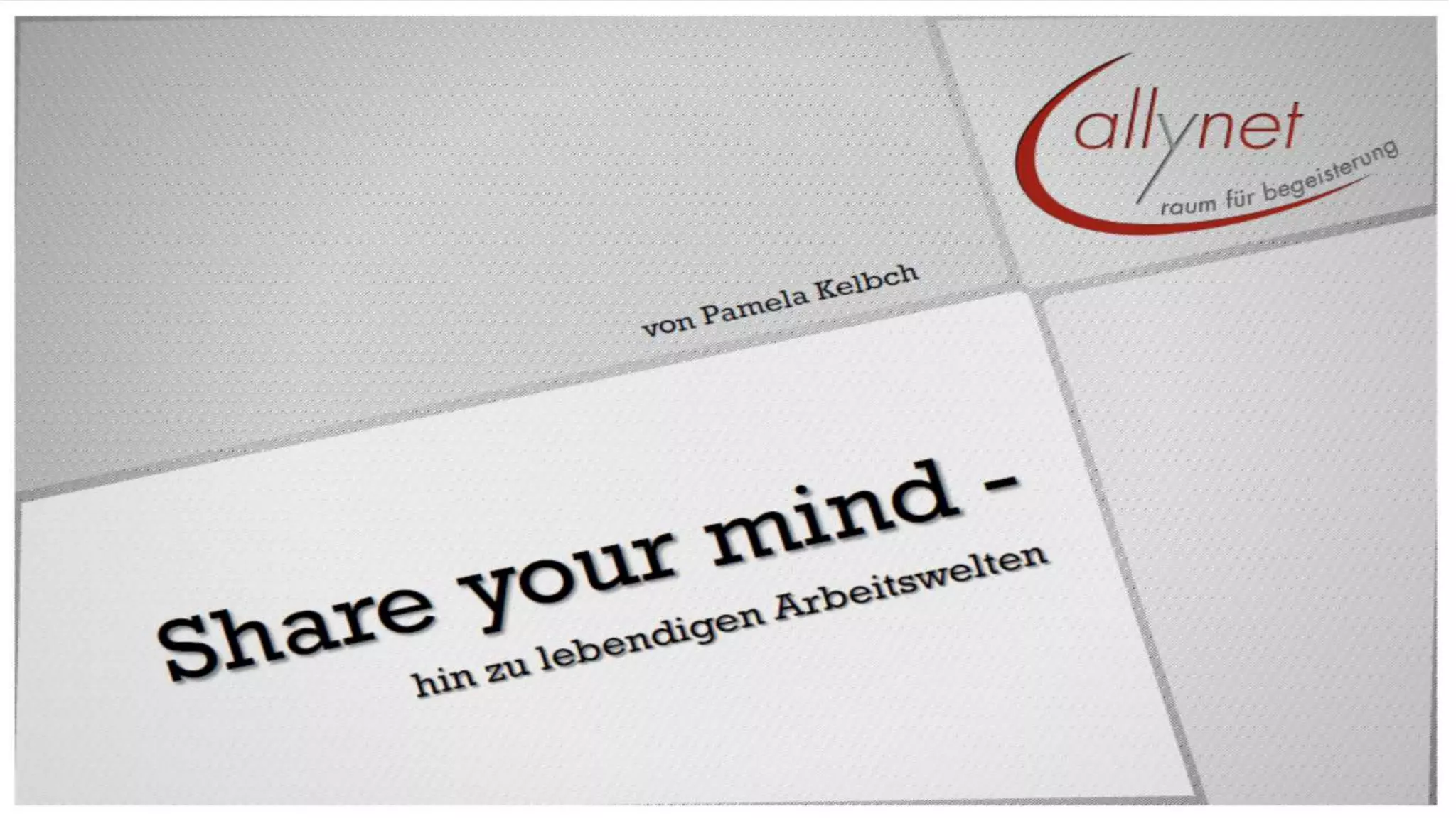 Der Vortrag 'share your mind – hin zu lebendigen Arbeitswelten' von Pamela Kelbch findet am 3. April 2014 statt und ist Teil der 7. Kollektiven Intelligenz Eventwoche. In dieser Woche präsentieren 11 Referenten in 18 Veranstaltungen, wie erfolgreich die Shareconomy bereits ist, und ermutigen zur Beteiligung und Wissenteilen. Weitere Informationen sind auf www.netbaes.net verfügbar.