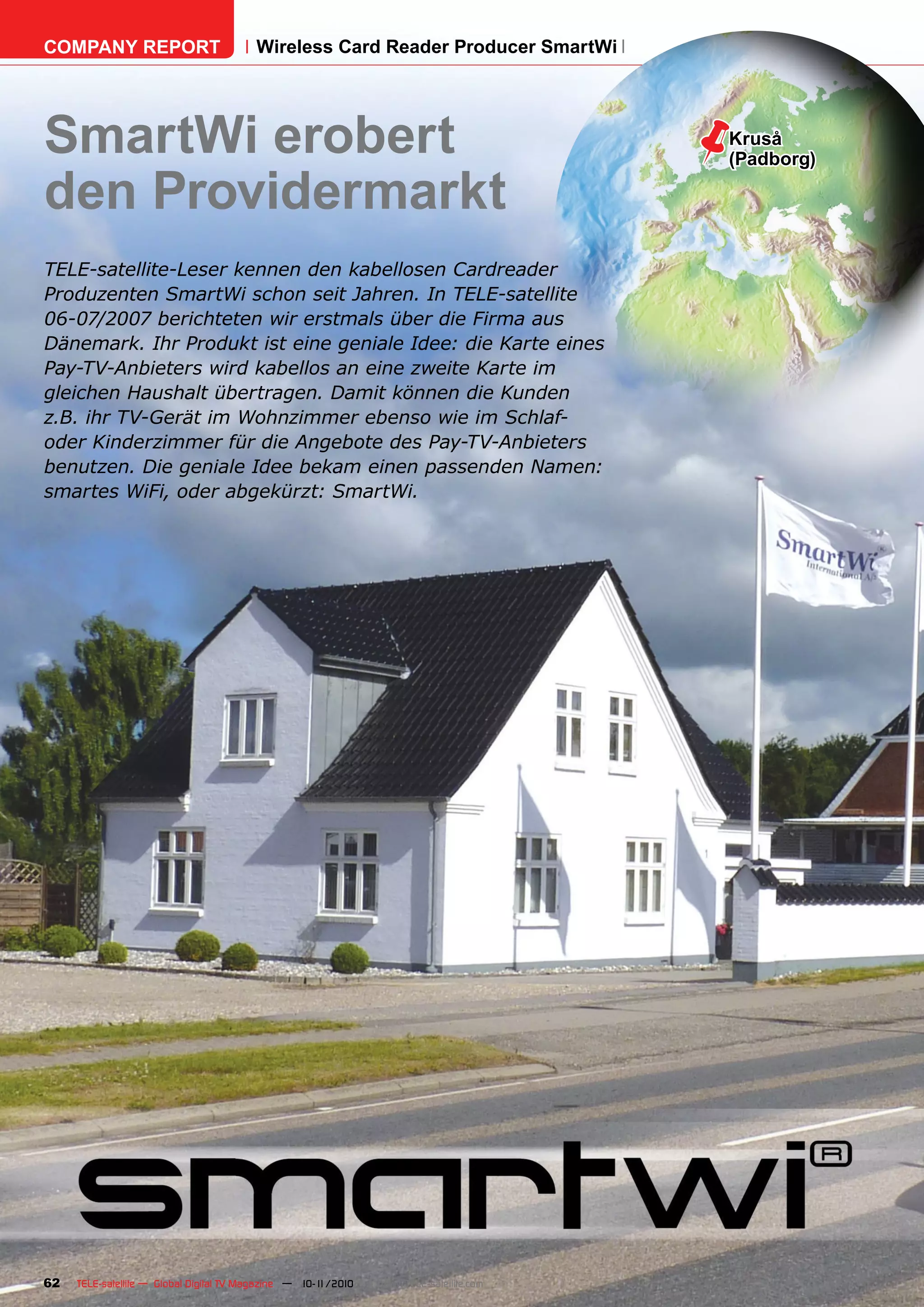 Smartwi, ein dänisches Unternehmen, hat einen kabellosen Pay-TV-Kartenleser entwickelt, der es ermöglicht, eine Pay-TV-Karte an mehrere TV-Geräte im Haushalt zu übertragen. Die zweite Generation des Smartwi bietet ein verbessertes Design und eine optimierte Technologie, um die Verbindung zu verbessern und attraktive Möglichkeiten für Programm-provider zu schaffen. Das Unternehmen plant, den Markt durch innovative Entwicklungen und eine gezielte Ausweitung seiner Zielgruppen zu erobern.