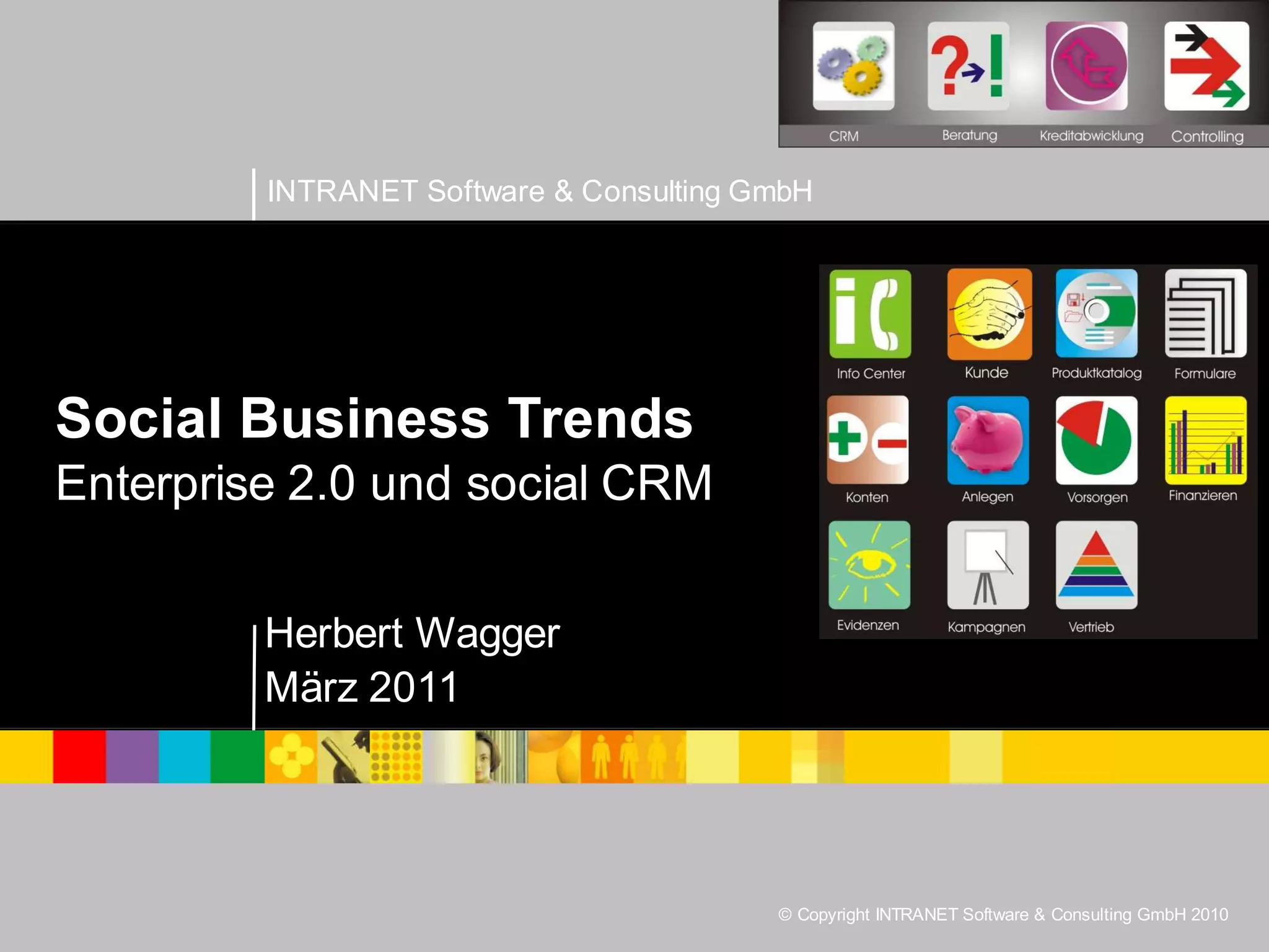 Die Bedeutung von Social Media und Web 2.0 für Unternehmen wächst, wobei 48 % der österreichischen Firmen bereits Social Media nutzen, jedoch nur 25 % strategische Ziele verfolgen. Enterprise 2.0 wird als eine Plattform verstanden, die Zusammenarbeit und Wissensaustausch fördert und die Kommunikation sowohl intern als auch extern verbessert. Neuerungen im CRM, unterstützt durch Social Media, ermöglichen effizientere Arbeitsweisen und optimierte externe Kommunikation.
