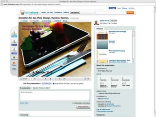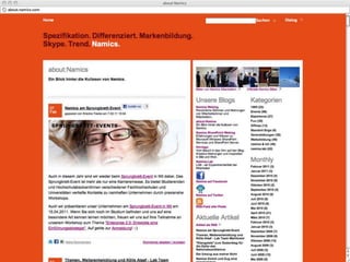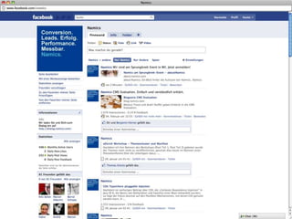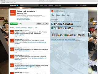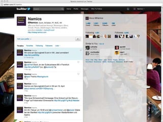 Das Dokument von Ralph Hutter, Leiter Marketing/Kommunikation bei Namics, diskutiert die Vor- und Nachteile von Social Media aus einer strategischen Perspektive. Es werden Schlüsselfaktoren wie Content-Management, Community-Building und Erfolgsmessung behandelt, während Best Practices für die Implementierung einer effektiven Social-Media-Strategie hervorgehoben werden. Außerdem wird betont, dass Social Media sowohl als Chance als auch als Risiko für Unternehmen betrachtet werden sollte.