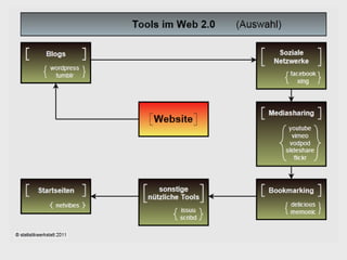Das Dokument gibt einen Überblick über verschiedene Social-Media-Tools und Plattformen, wie Facebook, Twitter, Blogs und Videoportale wie YouTube und Vimeo, sowie deren Vor- und Nachteile. Es beschreibt auch Webhosting-Dienste und Webdesign-Software, die für die Erstellung von Websites und Blogs erforderlich sind. Zudem wird die Funktionalität von Blogsystemen wie WordPress und Tumblr verglichen und die Nutzung von Social-Media-Profilen thematisiert.