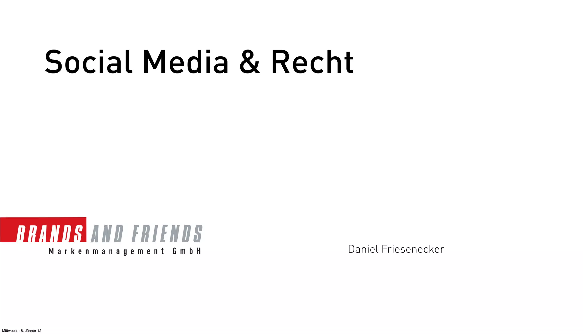 Das Dokument behandelt rechtliche Aspekte des Urheberrechts und die Nutzung von Social Media, insbesondere Facebook. Es erläutert die Impressumspflicht, die rechtlichen Rahmenbedingungen für die Nutzung von Inhalten, sowie die Notwendigkeit von Social Media Guidelines für Unternehmen. Ferner wird auf die Bedeutung von Datenschutzhinweisen und die Einhaltung von Nutzungsbedingungen hingewiesen.