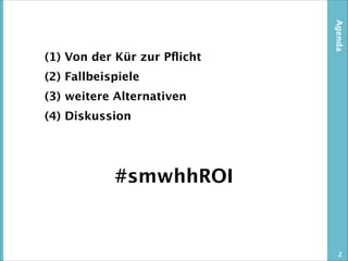 Die Präsentation diskutiert den ROI von Social Media und betont die Notwendigkeit, effektive Messmethoden zu entwickeln, um den Wert von Social-Media-Aktivitäten zu quantifizieren. Sie bietet Fallstudien und alternative Ansätze zur Erfolgsmessung sowie eine Diskussion über die Herausforderungen, mit denen Unternehmen konfrontiert sind. Der Vortrag schließt mit der Ermutigung zur Diskussion über individuelle Erfahrungen und Ansätze zur Erfolgsmessung.