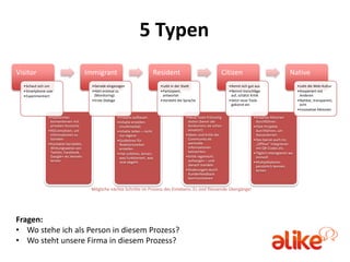 Das Dokument beschreibt verschiedene Typen von Nutzern im sozialen Web und deren Interaktionsmöglichkeiten sowie Strategien zur Integration von Feedback und zur Erstellung von Inhalten. Es stellt Fragen zur Positionierung von Unternehmen im Social Web und betont die Wichtigkeit von aktiven Dialogen und transparentem Handeln. Zudem werden Ansätze zur SWOT-Analyse und zur Entwicklung eines Redaktionsplans für die Veröffentlichung von Inhalten erläutert.