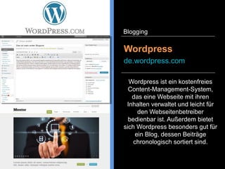 Die Dokumentation listet verschiedene Software-Tools und Plattformen auf, die für die moderne Arbeitswelt, soziale Interaktionen, Informationsmanagement und Unterhaltung nützlich sind. Dazu gehören Anwendungen wie WordPress, Google Apps, Dropbox, Airbnb und soziale Netzwerke wie Facebook und LinkedIn. Jedes Tool wird kurz beschrieben, einschließlich seiner Funktionen und Anwendungsbereiche.