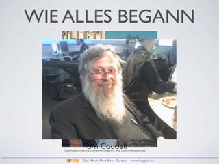 Das Dokument gibt einen Überblick über Augmented Reality (AR), deren Entstehung und verschiedene Technologien wie markerbasiertes und markerloses Tracking sowie Bildverarbeitung. Es beleuchtet die Verbreitung und das Wachstum von AR auf Smartphones über die Jahre und zeigt spezifische Inhalte und Anwendungen auf, einschließlich der Verwendung von AR-Brillen. Darüber hinaus wird die Rolle von AR als neues Medium in der Mobiltechnologie und deren Integration in alltägliche Geräte diskutiert.
