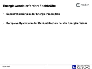 Das Dokument behandelt die Herausforderungen und Chancen im Bereich der Solarenergie in der Schweiz, insbesondere den benötigen Fachkräftemangel und die Anforderungen an die Energieeffizienz. Es wird diskutiert, wie die Energiewende durch interdisziplinäres Arbeiten und gezielte Maßnahmen zur Rekrutierung von Fachkräften gefördert werden kann. Zudem wird das zukünftige Marktvolumen in der Gebäudetechnik geschätzt und die Bedeutung von klaren Rahmenbedingungen für die Branche hervorgehoben.