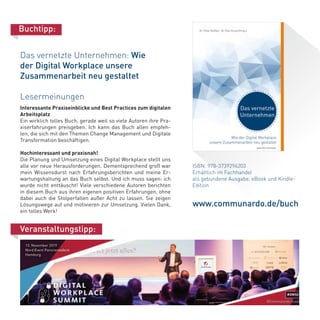 Der Communardo Solution Guide bietet umfassende Einblicke in die Umsetzung von digitalen Arbeitsplatzlösungen und Change Management durch verschiedene praxiserfahrene Autoren. Das Dokument hebt die Herausforderungen und strategischen Ansätze hervor, die moderne Unternehmen bei der Implementierung von Social Business und digitalen Plattformen bewältigen müssen, um Effizienz und Zusammenarbeit zu steigern. Zudem werden verschiedene Lösungen und Produkte vorgestellt, die Unternehmen helfen, ihre Kommunikations- und Arbeitsprozesse zu optimieren.