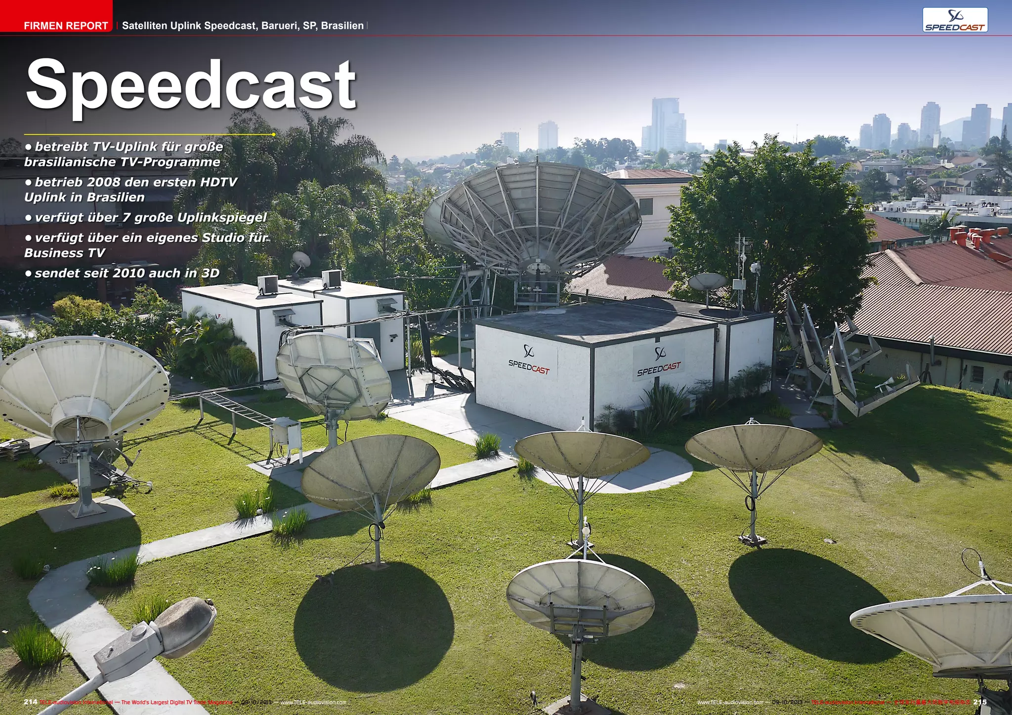 Speedcast ist ein bedeutender Satelliten-Uplink-Betreiber in Brasilien, der 2003 gegründet wurde und unter anderem den ersten HDTV-Uplink in Brasilien bereitstellte. Das Unternehmen verfügt über sieben große Uplinkspiegel und sendet sowohl reguläre TV-Programme als auch Business-TV-Inhalte für Kunden wie Volkswagen. Speedcast hat sich durch Kooperationen und technologische Upgrades zu einem führenden Anbieter im Bereich TV-Uplink in Südamerika entwickelt.