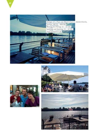 Der Anleger 511 in Eltville ist ein außergewöhnliches Restaurant direkt am Rhein, das in einer ehemaligen Denkmal geschützten Wartehalle für Personenschiffsverkehr untergebracht ist. Die spektakuläre Lage und die angebotenen Speisen, die lokale Weine begleiten, sind Hauptattraktionen, obwohl traditionelle rheingau typische Gerichte fehlen. Die Umgebung, mit der Platanenallee und dem Blick auf die kurfürstliche Burg, trägt zum besonderen Flair des Ortes bei.
