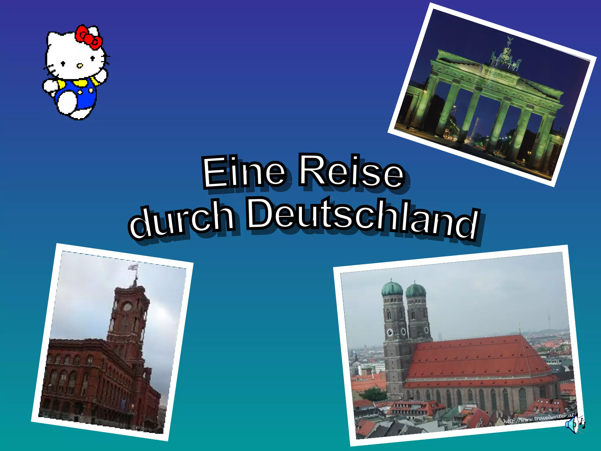 Die Bundesrepublik Deutschland besteht aus 16 Bundesländern und hat Berlin als Hauptstadt; die wichtigsten Städte sind Berlin, München, Hamburg und Köln. Deutschland hat 81 Millionen Einwohner, die Staatsfarben sind schwarz-rot-gold und das Wappen zeigt einen Adler. München ist die Hauptstadt von Bayern, bekannt für die Frauenkirche, während Berlin am Fluss Spree liegt und zahlreiche Sehenswürdigkeiten wie das Brandenburger Tor und den Fernsehturm bietet.