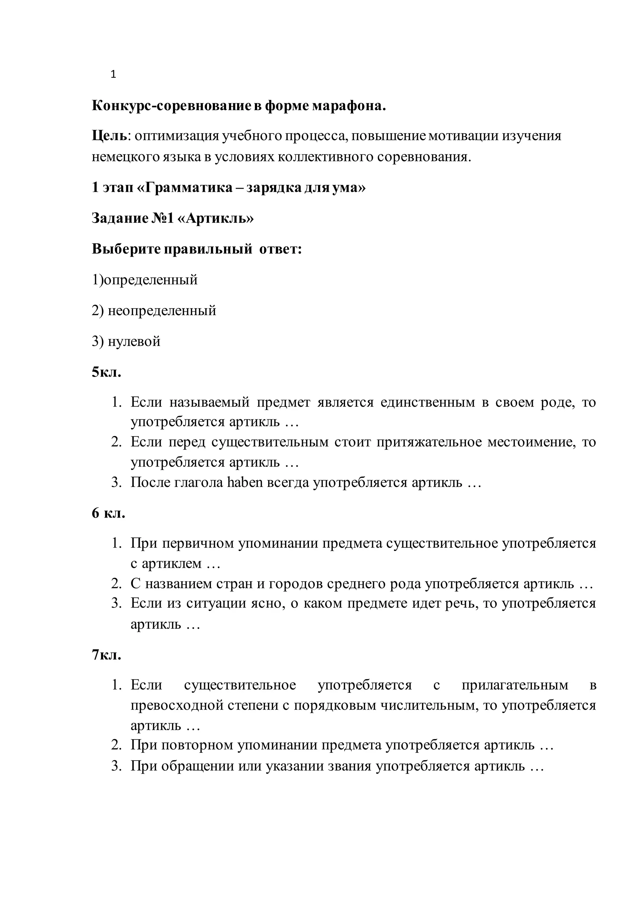 Das Dokument beschreibt einen Wettbewerb zur Optimierung des Deutschunterrichts, der in mehrere Aufgaben unterteilt ist, darunter Übungen zur Grammatik und zum Verständnis von Texten. Es beinhaltet auch spezifische Textpassagen und Aufgaben zu diesen Texten, die die Schüler lösen sollen. Ziel des Wettbewerbs ist es, die Motivation zum Deutschlernen durch kollektive Wettbewerbe zu steigern.