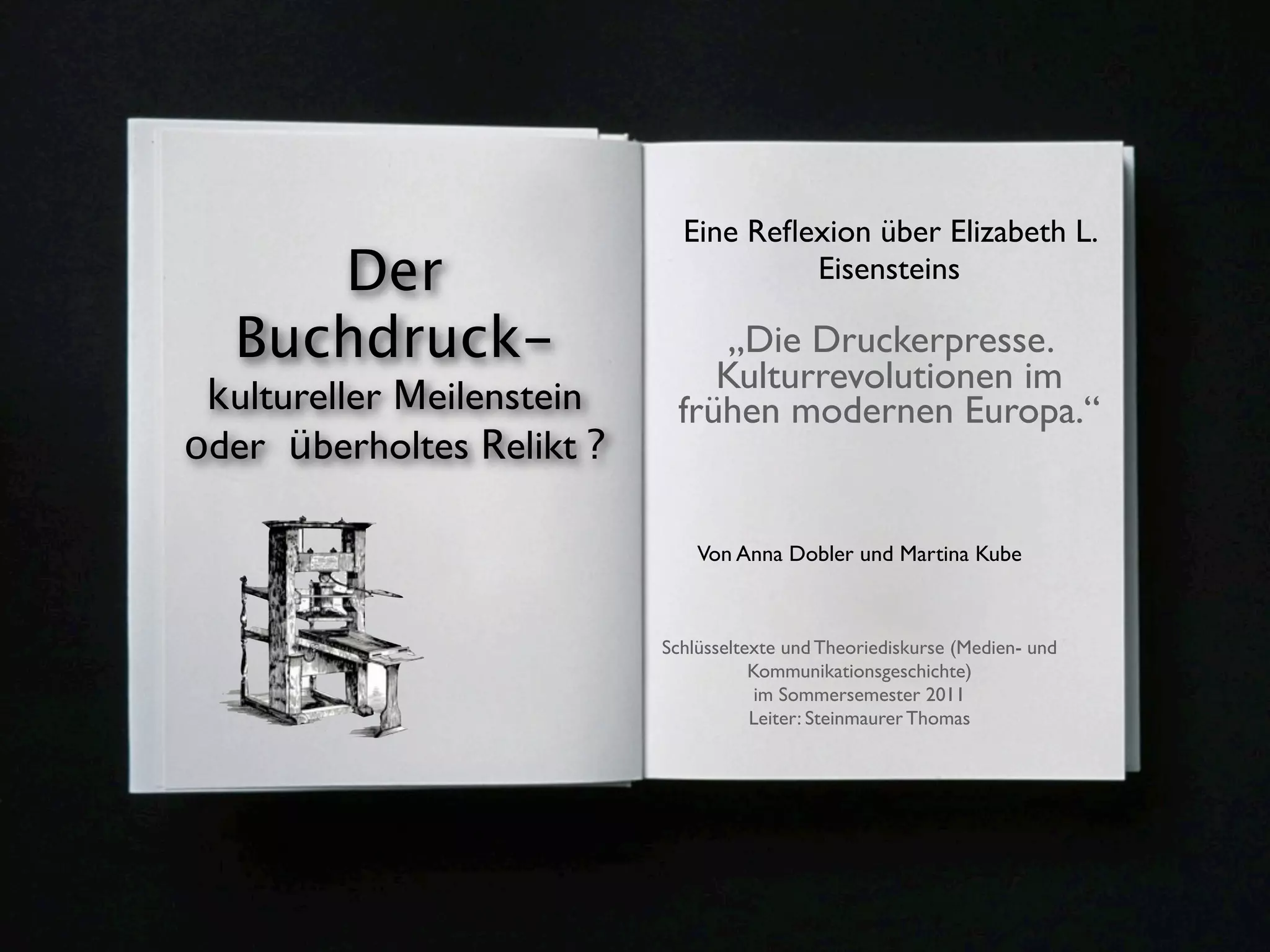 Die Reflexion über Elizabeth L. Eisensteins Buch 'Die Druckerpresse' untersucht die kulturellen Revolutionen, die durch die Erfindung des Buchdrucks im frühen modernen Europa angestoßen wurden. Die Autorinnen analysieren die Wechselwirkungen zwischen der Druckkultur und anderen gesellschaftlichen Entwicklungen, sowie die kritische Betrachtung der Rolle des Buchdrucks im Rahmen des Technologiedeterminismus. Sie diskutieren auch zeitgenössische Parallelen zur Digitalität und den Einfluss auf die Lesekultur der Gegenwart.