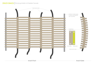 Der Stack Shack ist ein Rückzugs-Shelter mit flexibler Fassade, das Platz für bis zu vier Personen bietet und eine geschützte Umgebung für Entspannung, Lesen oder Meetings schafft. Das Design umfasst eine halbtransparente Struktur und ein gespanntes Dach, das angenehme Lichtverhältnisse erzeugt. Die verformbare Fassade ermöglicht eine intime Atmosphäre und fördert kreative Diskussionen innerhalb einer Arbeitsgruppe.