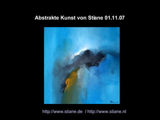 Das Dokument behandelt abstrakte Kunst, insbesondere die Werke von Christiane Schimmel, die durch Kontrast, räumliche Wirkung und Balance geprägt sind. Es bietet Links zu weiteren Informationen auf den Websites www.stiane.de und www.stiane.nl. Der Inhalt ist auf das Jahr 2007 datiert.