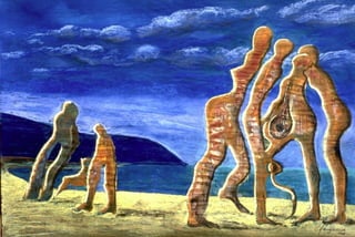 Strandspaziergang, Mischtechnik, Aquarellkarton, 41,5x59 cm, 1998.