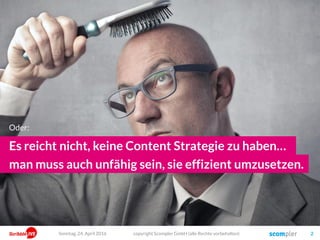 Das Dokument thematisiert die Herausforderungen im strategischen Content Marketing und die Notwendigkeit, den Fokus auf den Nutzen und die Interessen der Zielgruppen zu legen. Es wird diskutiert, wie traditionelle Marketingansätze angesichts der Veränderungen in der Mediennutzung und der Fragmentierung von Konsumenteninteressen an Wirksamkeit verlieren. Der Autor schlägt vor, die Content-Produktion effizienter zu gestalten und durch das 'Content Radar' strukturiert zu arbeiten, um relevante Inhalte zu schaffen, die echten Mehrwert bieten.
