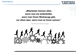 Das Dokument thematisiert die wachsende Abhängigkeit von qualifizierten Mitarbeitern im Personalmanagement angesichts des demografischen Wandels in Deutschland, der bis 2025 zu einem Mangel von bis zu 6,5 Millionen Arbeitskräften führen könnte. Es werden Strategien zur Mitarbeitergewinnung, -bindung und -entwicklung vorgestellt, um die Wettbewerbsfähigkeit von Unternehmen zu sichern. Ein ganzheitlicher Ansatz wird empfohlen, um Mitarbeiter als zentrale Ressource wertzuschätzen und nachhaltig zu motivieren.