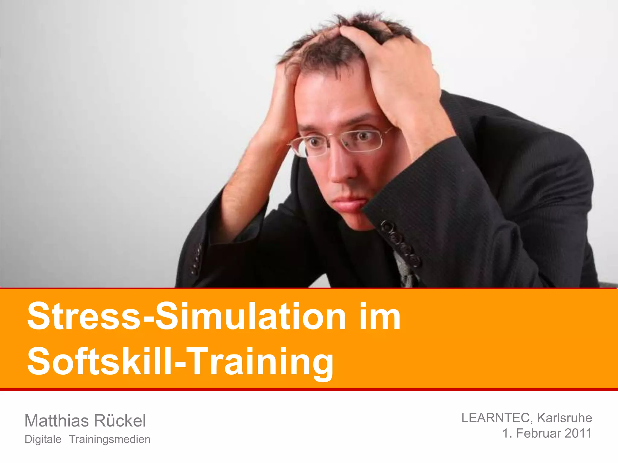 Das Dokument beschreibt ein Stress-Simulations-Training, das in Gruppen durchgeführt wird und auf Teamverhalten, Kommunikation und Konfliktlösung abzielt. Teilnehmer durchlaufen eine Computersimulation, die realistische Weltraummissionen nachstellt, um ihr Verhalten zu analysieren und zu optimieren. Die Struktur des Seminars beinhaltet Phasen von Vorbereitung, Simulation und Reflexion, um eine intensive Auseinandersetzung mit eigenen Handlungsmustern zu fördern.