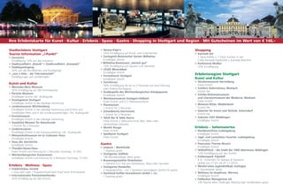 Die StuttCard bietet Touristen in Stuttgart eine Kombination aus Freifahrten mit dem VVS 3-Tages-Ticket und Zugang zu über 50 Attraktionen für insgesamt 140 Euro. Die Karte ermöglicht kostenlosen Eintritt für zwei Kinder bis 17 Jahre sowie diverse Ermäßigungen auf Eintritte, Rundfahrten und gastronomische Angebote. Touristen können die Stadt bequem erkunden, ohne sich um Staus oder Parkplätze kümmern zu müssen.