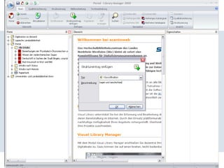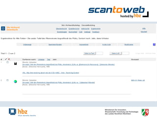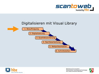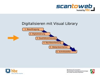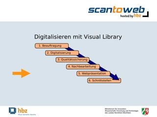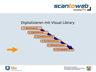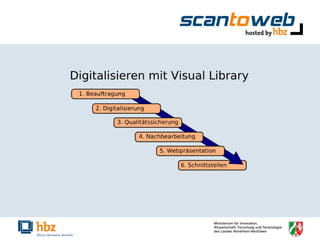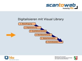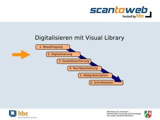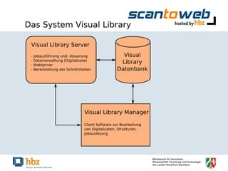 Das Dokument beschreibt das Angebot von 'Scantoweb hosted by hbz', das eine kostengünstige, flexible Lösung für Bibliotheken zur Digitalisierung und Datenverwaltung bietet. Es erläutert die bereitgestellte technische Infrastruktur, die verschiedenen Funktionalitäten der Visual Library Software und die Preisgestaltung, die auf Technik, Personal und Softwarelizenzen beruht. Zudem hebt es die Vorteile des Dienstes hervor, wie reduzierte Personalkosten und eine verbesserte Datensicherheit.