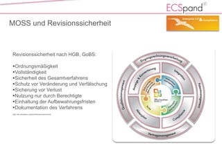 Der Dokument beschreibt, wie die d.velop AG mit der Marke ecspand revisionssichere Prozesse für Microsoft SharePoint ermöglicht. Es werden die Anforderungen und Lösungen zur Einhaltung von Revisionssicherheit, wie Dokumentation, Schutz vor Veränderungen und Archivierung, erläutert. Darüber hinaus wird die Integration und Nutzung von ecspand als umfassende Lösung für Enterprise Content Management hervorgehoben.