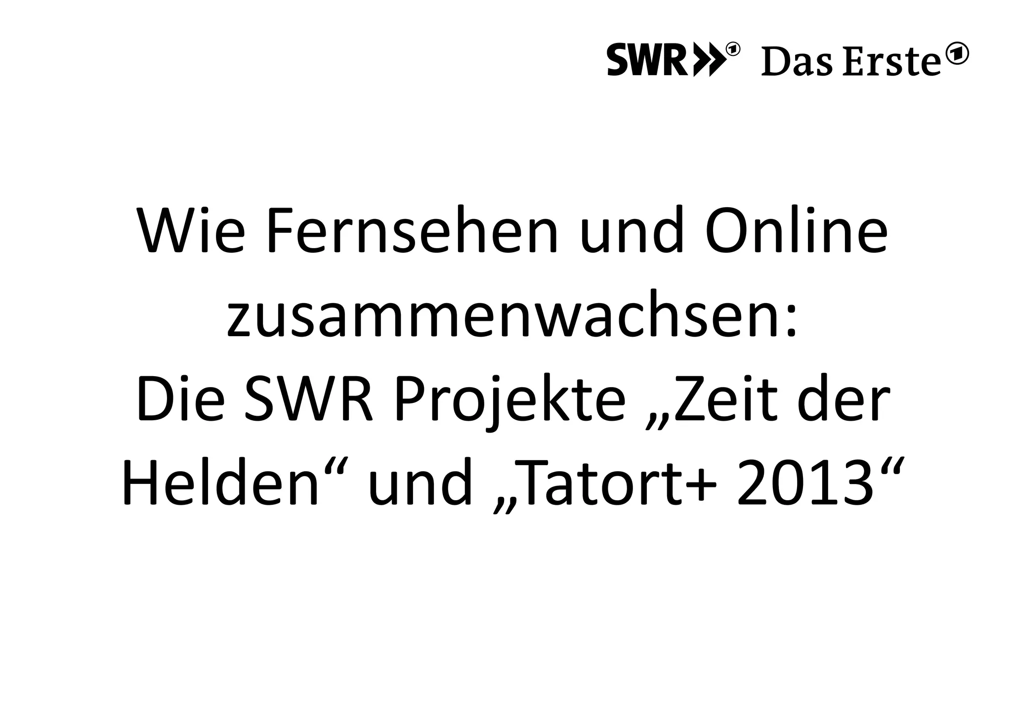 Das Dokument beschreibt die SWR-Projekte 'Zeit der Helden' und 'Tatort+ 2013', die das Fernsehen und Online-Interaktionen miteinander verbinden. Die Initiativen fördern eine tiefere Zuschauerbeteiligung durch interaktive Elemente und Transmedia Storytelling, wobei die Zuschauer in die Handlung eintauchen und ihre Meinungen teilen können. Der Fokus liegt auf der Schaffung einer aktiven Community, die bereits vor dem eigentlichen Ausstrahlungstermin in die Handlung involviert wird.