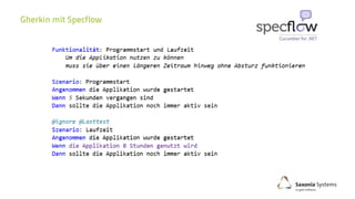 Das Dokument behandelt verschiedene Aspekte der Softwareentwicklung, insbesondere im Hinblick auf Testmethoden und Frameworks. Es werden Prinzipien für Unit-Tests sowie deren Unterscheidung von anderen Testarten beschrieben, einschließlich Bezug auf Performance und Validierung. Außerdem wird auf verschiedene Tools und Methoden eingegangen, wie z.B. IoC-Container, ORM und Testautomatisierung, um die Effizienz und Qualität der Softwareentwicklung zu steigern.