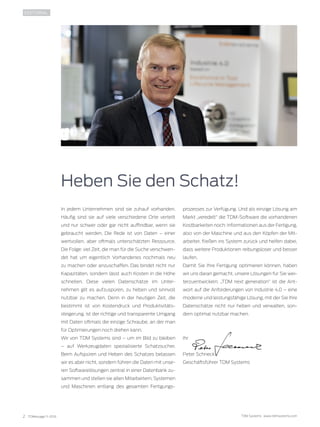 Das Dokument beschreibt die Entwicklungen von TDM Systems im Bereich der Werkzeugverwaltung, insbesondere die Einführung von 'TDM Next Generation', einer leistungsstarken Softwarelösung zur Optimierung der Datenverwaltung in der Fertigung. Es wird betont, wie wichtig die zentrale Verwaltung und Nutzung vorhandener Daten ist, insbesondere im Kontext von Industrie 4.0 und Digitalisierung. Zudem wird die Rolle der Sandvik Gruppe im Aufbau eines 'Digital Center of Excellence' hervorgehoben, um neue Geschäftmodelle und Technologien zu entwickeln.