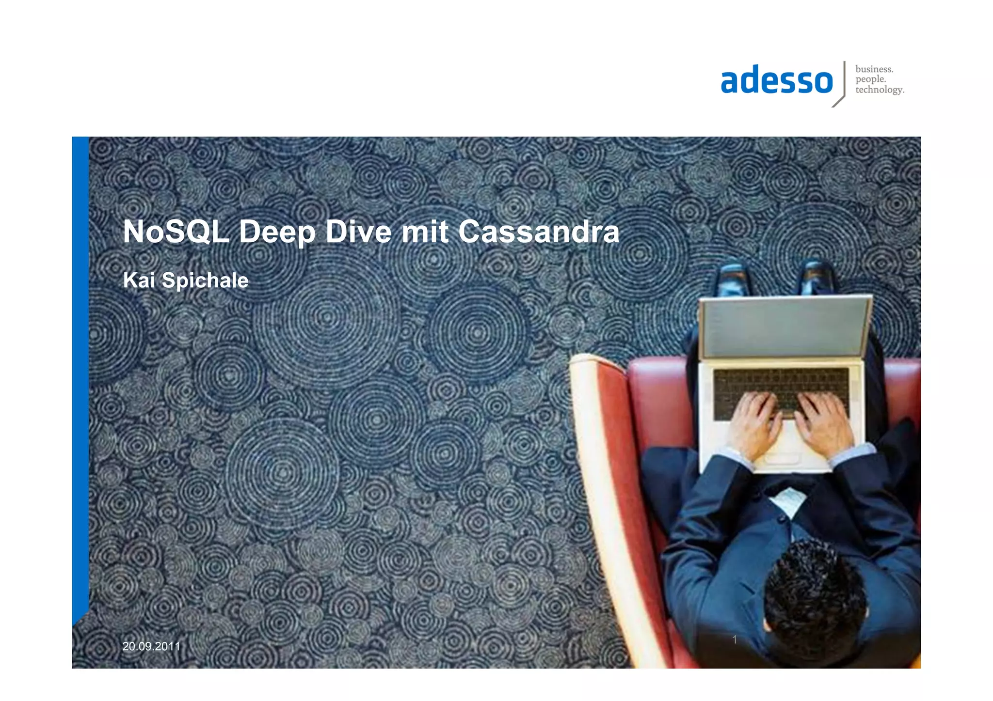 Das Dokument ist eine umfassende Präsentation über Apache Cassandra, eine verteilte, skalierbare und hochverfügbare NoSQL-Datenbank, die ursprünglich bei Facebook entwickelt wurde. Es behandelt wesentliche Konzepte wie Datenverteilung, Konsistenzmodelle, Replikationsstrategien sowie ein schemaloses Datenmodell und vergleicht die Leistung von Cassandra mit traditionellen relationalen Datenbanken wie MySQL. Die Präsentation betont die Vorteile von Cassandra in Bezug auf Verfügbarkeit und Skalierbarkeit, während auch die Herausforderungen im Umgang mit Konsistenz und Datenintegrität diskutiert werden.