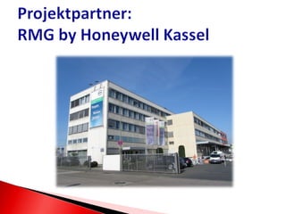 Das Dokument beschreibt die Geschichte und Entwicklung der 'Hessenwerke Maschinenfabrik', die 1964 in RMG umbenannt und seit 2009 Teil von Honeywell ist. Es werden verschiedene Produkte und Komponenten wie Gasdruckregelgeräte und Automatisierungssysteme der Firma aufgeführt. Außerdem werden die sicherheitsrelevanten Aspekte und Prüfzeiten bei der Automatisierung erwähnt.