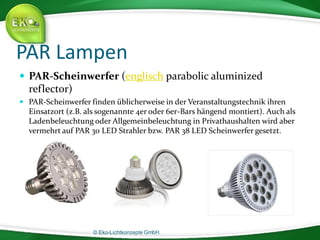 Das Dokument beschreibt verschiedene Sockeltypen und Leuchtmittel, die in der Beleuchtungstechnik verwendet werden, wie E27, GU10, G9 und G24, und erläutert deren Anwendungen sowie technische Spezifikationen. Es wird auf die Unterschiede zwischen den Sockeln, deren Verwendung in verschiedenen Leuchtmitteln und die Bedeutung der Energieeffizienzklassen eingegangen. Zudem wird die Funktionsweise von Glühbirnen, Energiesparlampen und LEDs erklärt, um den Leser über die Entwicklungen in der Lichttechnik zu informieren.