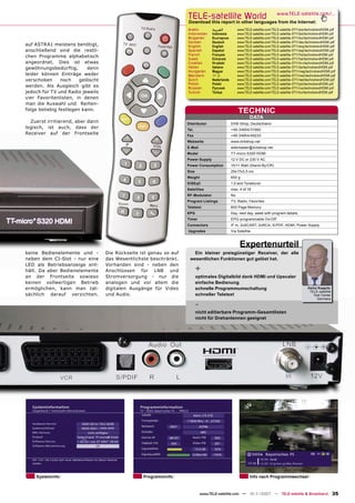 Der Testbericht zum Technotrend TT-Micro S320 Satellitenreceiver hebt die HD-Bildübertragung über HDMI hervor und beschreibt die Vorteile der schnellen Programmumschaltung sowie die Benutzerfreundlichkeit. Der Receiver ist kompakt, stromsparend und ermöglicht den Empfang von Fernsehsendern in hoher Auflösung. Trotz einiger Einschränkungen, wie der unmöglichen Bearbeitung von Programmlisten, überzeugt das Gerät durch seine grundlegenden Funktionen zu einem attraktiven Preis.