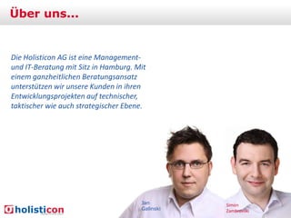 Das Dokument beschreibt die testgetriebene Geschäftsprozessmodellierung mit Camunda BPM, die während eines Community-Events der Holisticon AG vorgestellt wurde. Es wird erläutert, warum Testen in BPM/ SOA maßgeblich ist, um höhere Flexibilität, nachhaltige Qualität und agile Entwicklung zu ermöglichen. Zusätzlich werden verschiedene Testarten und deren Anwendung in Prozessen thematisiert sowie deren Bedeutung für erfolgreiche Entwicklungsprojekte.