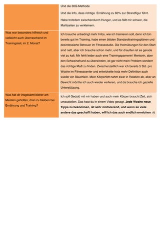 Der Strandfigur Coaching Club bietet eine Plattform für Mitglieder unterschiedlichen Alters, um ihre Fitnessziele mit individuell zugeschnittenen Ernährungs- und Trainingsplänen zu erreichen. Viele Mitglieder berichten von einer positiven Erfahrung, die durch persönliche Betreuung, gesunde Rezeptideen und motivierende Videos unterstützt wird. Obwohl sich einige Mitglieder anfangs skeptisch zeigten, sind sie insgesamt zufrieden mit den erzielten Fortschritten und der Gemeinschaft innerhalb des Clubs.