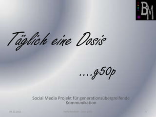 Das Dokument behandelt die Notwendigkeit und Methoden der generationsübergreifenden Kommunikation, insbesondere über Social Media. Es wird auf die Probleme und Missverständnisse zwischen den Generationen eingegangen und Vorschläge zur Förderung des Dialogs, der Werte und der gemeinsamen Ziele gemacht. Ziel ist die Schaffung einer Plattform für aktiven Austausch, um Verständnis und Kooperation zwischen den Generationen zu stärken.