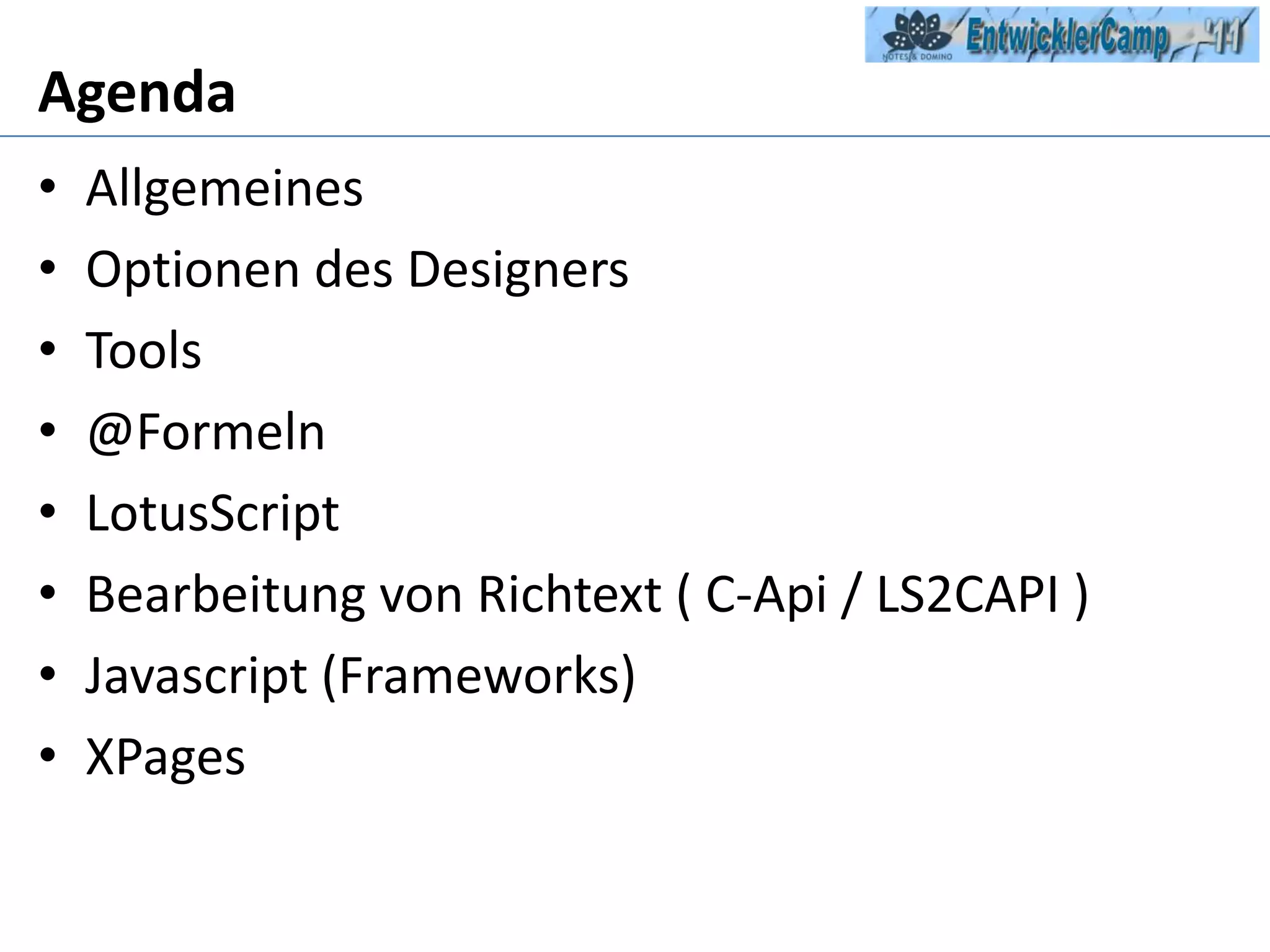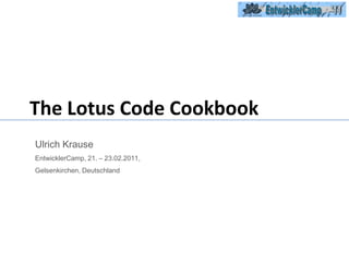 Das Dokument behandelt eine Agenda für das Lotus Code Cookbook, das verschiedene Themen rund um LotusScript, JavaScript, XPages und Entwicklerwerkzeuge abdeckt. Es werden Best Practices, Performance-Optimierungen, Logging-Methoden, und Design-Optionen diskutiert, verbunden mit praktischen Beispielen und Demos. Zudem werden neue Funktionen und Methoden zur Steigerung der Effizienz in der Anwendungserstellung vorgestellt.