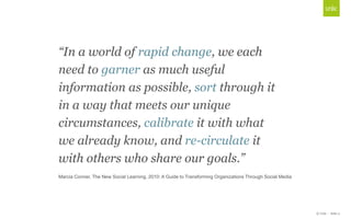 Das Dokument behandelt die Bedeutung von sozialer Zusammenarbeit und sozialen Softwarelösungen in einem sich schnell verändernden Geschäftsumfeld. Es wird darauf hingewiesen, dass viele Unternehmen Schwierigkeiten haben, ihre Social-Initiativen erfolgreich umzusetzen, weil sie zu viel Wert auf Technologie legen und nicht genug auf Führung und Beziehungen. Laut einer Studie des McKinsey Global Institute liegt ein großes Potenzial in der Verbesserung der Kommunikation und des Wissensaustauschs durch den Einsatz sozialer Werkzeuge.