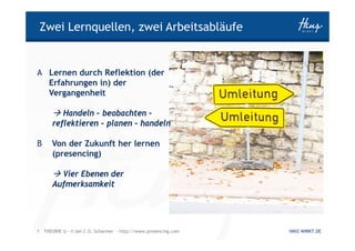 Otto Scharmers Theorie U beschreibt einen Transformationsprozess zur Innovation und Veränderung, der in fünf Schritten verläuft: Beginn, Abtasten, Presencing, Erschaffen und Entdecken. Der Prozess betont das Lernen aus der Zukunft und die Bedeutung von Achtsamkeit über vier Ebenen des Zuhörens. Wichtige Aspekte der Theorie sind das Erkennen von Mustern, die Verbindung mit der eigenen Quelle der Inspiration und die Entwicklung eines neuen kollektiven Bewusstseins.