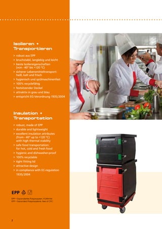 Die Thermo Future Box ist eine robuste und leichte Lösung für den Transport und die Isolierung von Lebensmitteln, die Temperaturstabilität von -40° bis +120°C bietet. Sie ist hygienisch, spülmaschinenfest und zu 100% recycelbar, was sie ideal für den professionellen Einsatz macht. Die Boxen sind stapelbar, kombinierbar und in verschiedenen attraktiven Designs erhältlich, um unterschiedliche Anforderungen zu erfüllen.