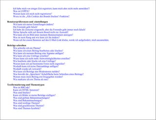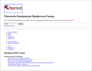 Das Dokument ist ein FAQ-Abschnitt für das Floortech-Forum, das sich auf energiesparendes Bauen konzentriert. Es behandelt häufige Fragen zur Registrierung, Anmeldung, Beiträge schreiben, Benutzerpräferenzen sowie Funktionen des Forums. Die Informationen richten sich an neue und bestehende Mitglieder und erklären die Nutzung von Forum-Features wie private Nachrichten, Benutzergruppen und die Verwaltung von Einstellungen.