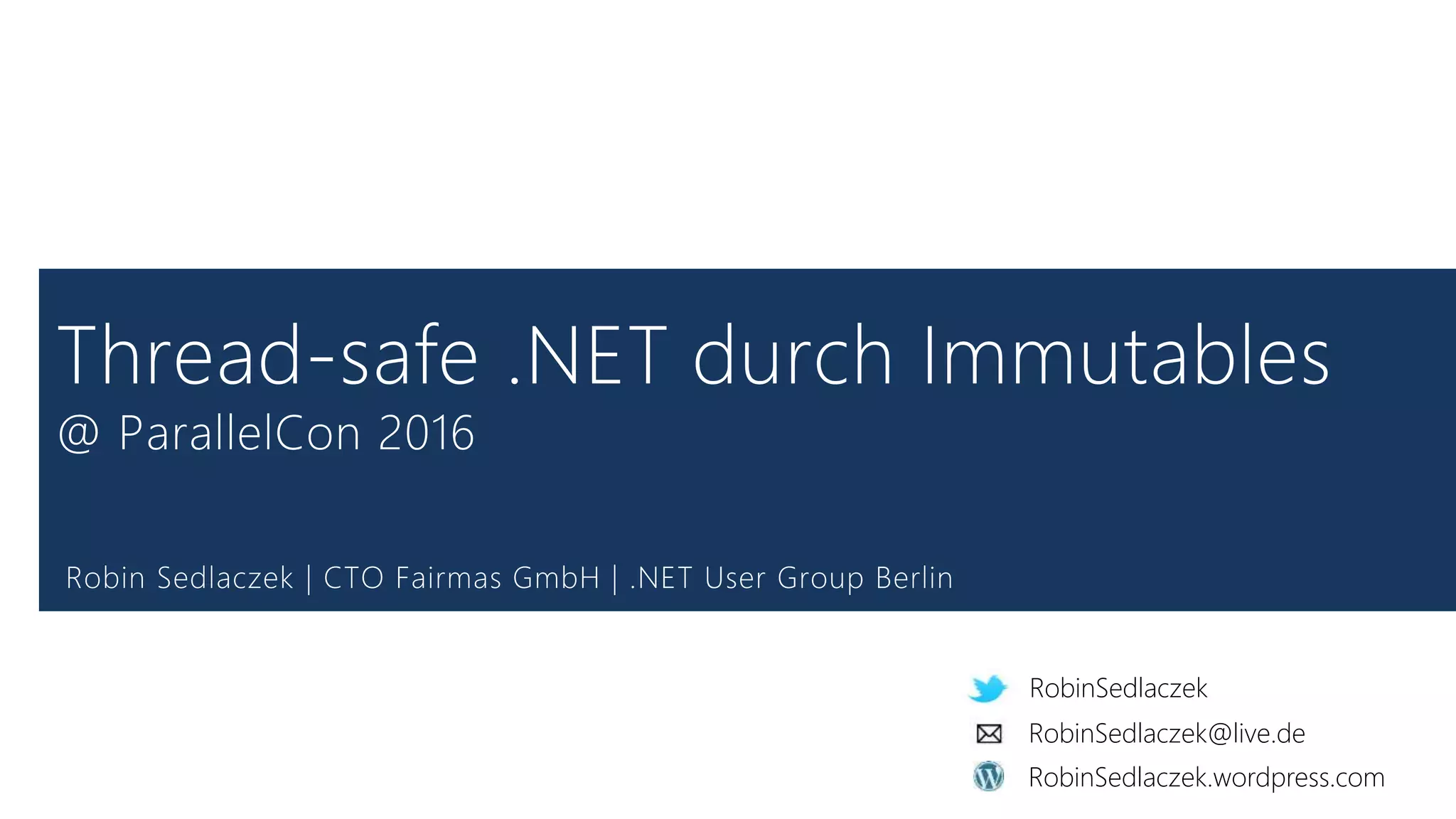 Das Dokument beschreibt die Konzepte und Vorteile von immutables in der Softwareentwicklung, einschließlich der Definition von unveränderlichen Objekten und deren Rolle in .NET. Es werden spezifische Funktionen von C# 6 und 7 zur Unterstützung immutabler Objekte behandelt und technische Details zur Implementierung und Nutzung immutabler Sammlungen sowie zur Roslyn-Compiler-Plattform erörtert. Zudem werden die Vorteile von immutability, wie verbesserte Thread-Sicherheit und Speicherverbrauch, erläutert.