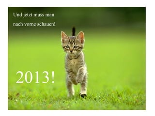 Das Dokument reflektiert über das vergangene Jahr 2012 und blickt optimistisch auf das Jahr 2013. Es betont die Notwendigkeit von Zusammenarbeit, Wachsamkeit und Entdeckung, um die Herausforderungen der Zukunft zu meistern. Der Autor wünscht den Lesern ein angenehmes und gewinnbringendes Jahr 2013.