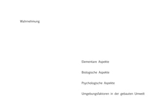 Das Dokument behandelt die Wahrnehmung und Darstellung von Zeit, einschließlich biologischer und psychologischer Aspekte sowie Umgebungsfaktoren in der gebauten Umwelt. Es beschreibt, wie die innere Uhr, Architektur und moderne Technologien die Zeitwahrnehmung beeinflussen und analysiert verschiedene Zeitmessmethoden und deren kulturelle Bedeutung. Zudem wird die Entwicklung innovativer Zeitmesser wie Smartwatches thematisiert.