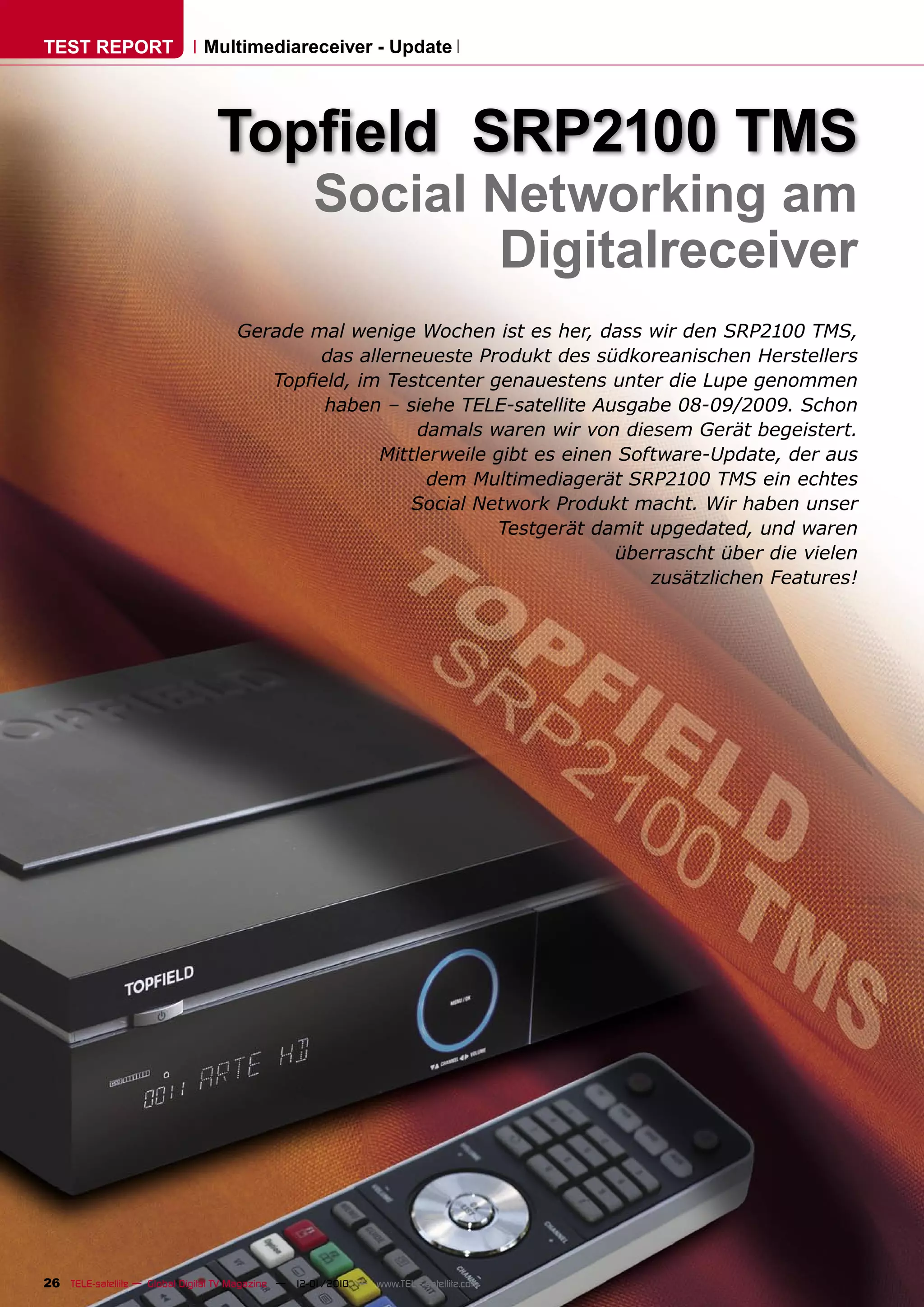 Der Topfield SRP2100 TMS erhielt ein Software-Update, das neue Funktionen zur Integration von Social Networking und Internet-Radio hinzufügt, darunter die Nutzung von Twitter und Shoutcast. Der aktualisierte Receiver ermöglicht das Erstellen und Verwalten von bis zu fünf Netzwerkprofilen und verbessert die Benutzeroberfläche durch vollständige Lokalisierung und die Unterstützung von Untertiteln. Mit diesem Update positioniert sich Topfield als Vorreiter im Bereich moderner Unterhaltungselektronik.