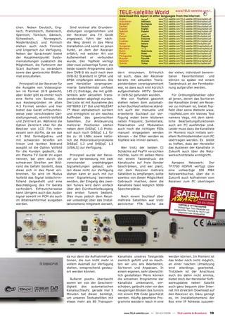 Der Testbericht zum Topfield TF7700 HD PVR, einem neuartigen Twin HD-PVR Satellitenempfänger, hebt die beeindruckende Ausstattung und Benutzerfreundlichkeit hervor, einschließlich HDMI-Anschluss, umfangreicher Audio- und Videoauswahl sowie vielfältiger Formatunterstützung. Der Receiver ermöglicht gleichzeitige Aufnahmen von zwei verschiedenen Programmen und bietet zusätzlich eine praktische EPG-Funktion zur Programmierung. Das Gerät ist für den internationalen Markt konzipiert und unterstützt die neuesten Standards für Satellitenempfang, dabei werden Softwareupdates direkt über das Netzwerk bereitgestellt.