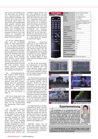 Der Testbericht beschreibt den Topfield TF7700HSci HD Receiver als soliden HDTV-Empfänger mit einem eleganten Design und vielen praktischen Funktionen. Er unterstützt die neuesten DVB-S2 Standards und bietet umfangreiche Einstellungsmöglichkeiten sowie eine benutzerfreundliche Oberfläche. Trotz einiger Einschränkungen bei der Kanalspeicherkapazität und teilweise veralteten Transponderdaten überzeugt das Gerät durch gestochen scharfe Bildqualität und eine einfache Handhabung.