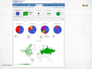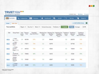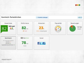 Das Dokument beleuchtet die Bedeutung von Hotelbewertungen als Marketinginstrument und für Marktforschung. Es wird darauf hingewiesen, dass Konsumenten zunehmend Entscheidungen basierend auf Nutzerempfehlungen treffen, während traditionelle Werbung an Bedeutung verliert. Trustyou analysiert große Mengen an Bewertungen, um Hotels und Destinationen zu helfen, ihre Reputation zu verbessern und die Kaufentscheidungen der Reisenden positiv zu beeinflussen.