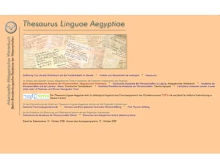 Das akademische Projekt 'Altägyptisches Wörterbuch' an der Berlin-Brandenburgischen Akademie der Wissenschaften zielt darauf ab, ein digitales Korpus ägyptischer Texte mit verschiedenen Recherchemöglichkeiten aufzubauen. Nutzer können nach einzelnen Wörtern oder Texten suchen und erhalten detaillierte Einblicke in die Einträge und Struktur der Texte. Zudem bietet das Projekt eine objektorientierte Gruppierung der Texte zur leichteren Navigation.